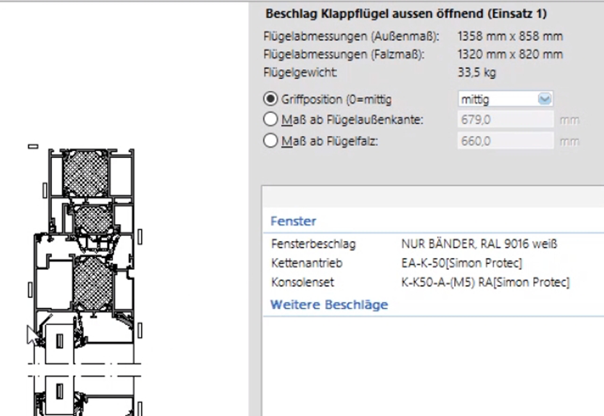 LogiKal von Orgadata führt den Anweder durch den Planungsprozess. Im ersten Schritt wählt der Anwender die zu verbauenden Elemente und das passende Zubehör aus. Hersteller bieten den Verarbeitern einen Online-Katalog an, aus welchem die Produkte ausgewählt werden. Der Fensterbauer wählt z.B. aus den Katalogen Profilsystem, Scharniere bis hin zu Antriebshersteller und Antriebsvariante. SIMON PROtec stellt die Kettenantriebe EA-K inklusive der Konsolen für die digitale Planung zur Verfügung. Die Software LogiKal kann zudem den Verarbeitern auf Wunsch die entsprechenden Daten zur Fensterproduktion für CNC-gesteuerte Doppelgehrungssägen und Profilbearbeitungsmaschinen bereitstellen. Die Programmierung an den Maschinen entfällt damit vollständig.