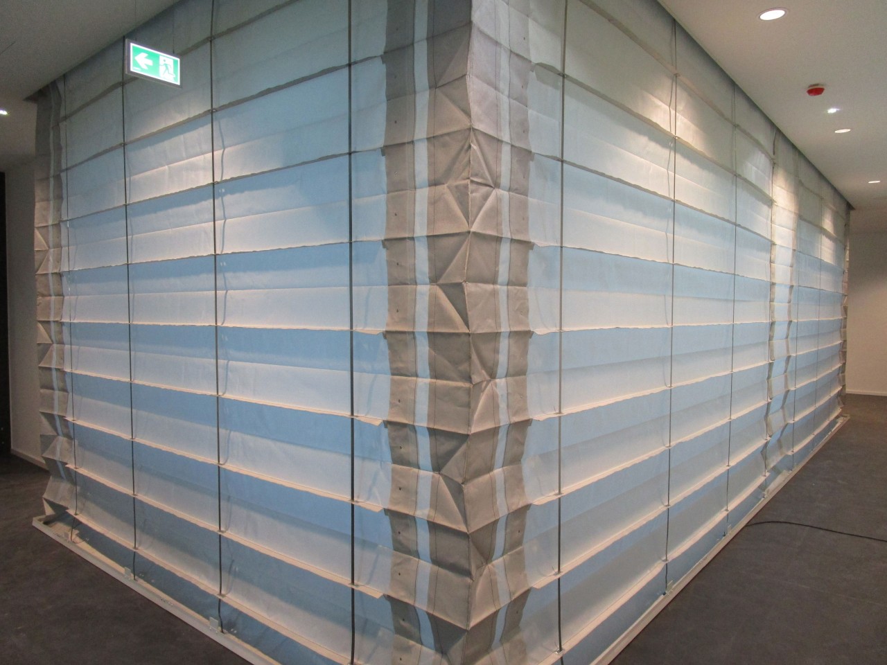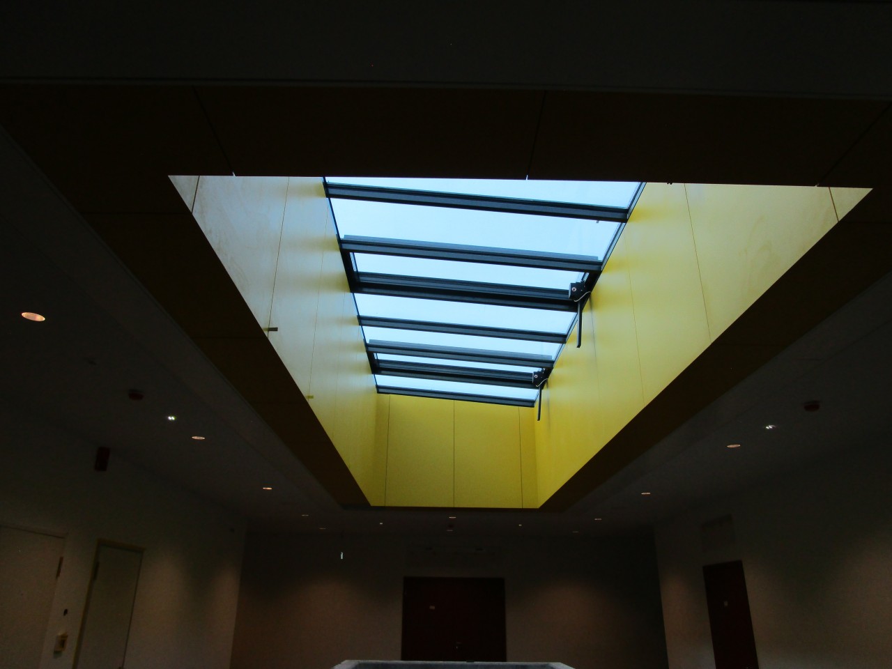 Montiert wurde ein vierseitig geschlossener Rauchschutzvorhang nach DIN EN 12101-1 ohne feste Elemente. Ziel ist die Entrauchung des zweiten Obergeschosses über das offene Atrium ins dritte Obergeschoss. Umgesetzt wird das Ziel durch eine vierseitige umlaufende Schließung des Vorhangs und durch die Öffnung der Dachfenster zur Entrauchung. Die Montage erfolgte durch SIMON PROtec Deutschland.
